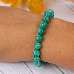 Amazonite gemstone bracelet is known to bring emotional balance, helping to soothe stress and anxiety. It is believed to enhance communication and self-expression, making it easier to speak one’s truth. Additionally, it is associated with attracting good luck and positive energy, promoting overall well-being.